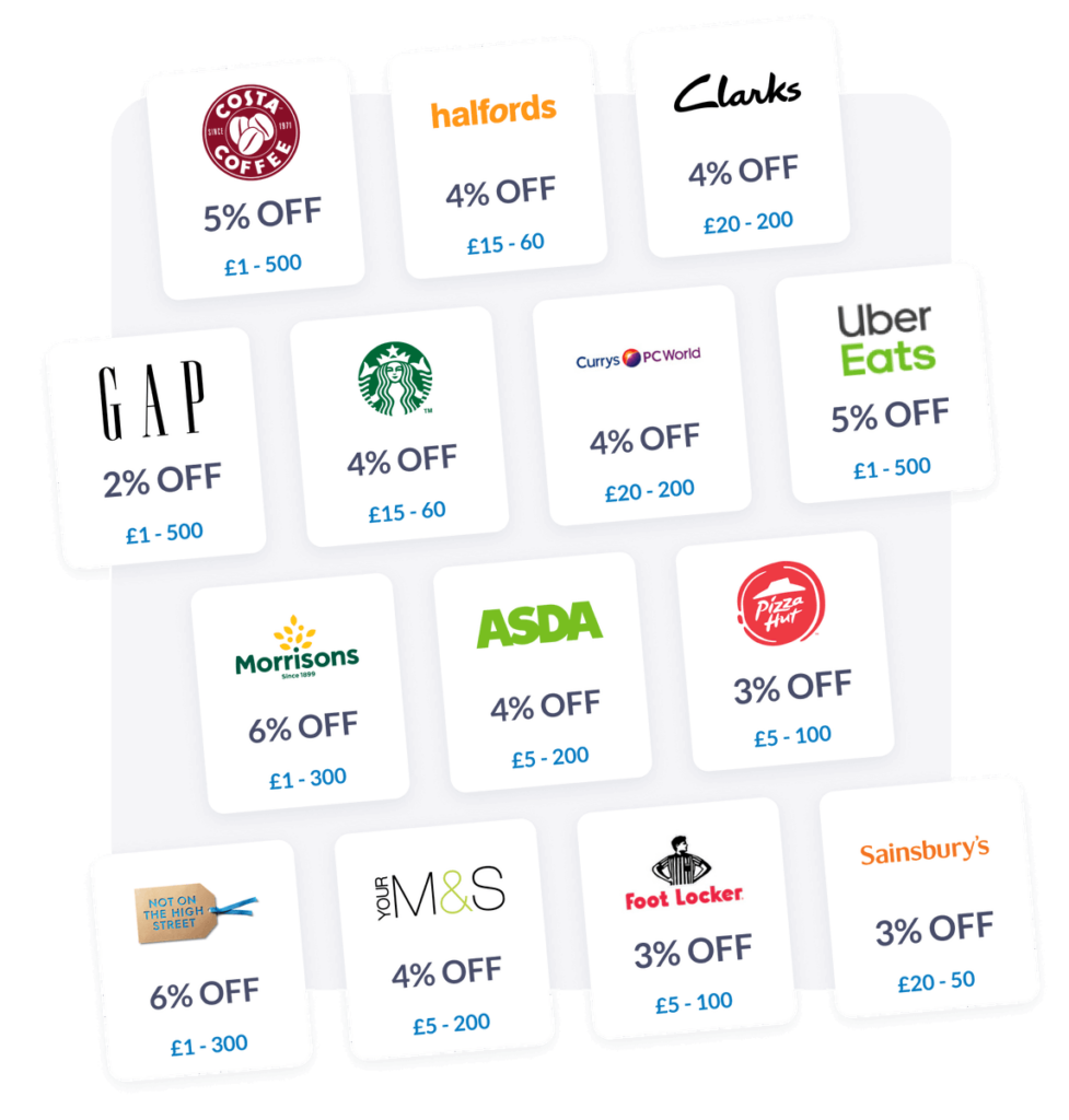 - Hundreds of UK Retailers – From Tesco to Uber Eats.