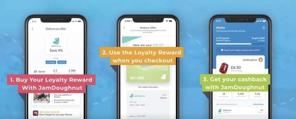 JamDoughnut helps you earn instant cashback on everyday spending, whether you’re topping up with a gift card or paying directly at the till. Here’s a snapshot of popular deals currently available in the UK: