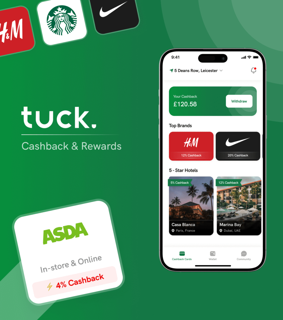 tuck is a UK shopping app that sells digital gift cards (often called cashback cards) for popular retailers. When you buy a card in the app, you receive instant cashback into your tuck wallet. You then spend that digital card in-store or online at the matching retailer just like any other gift card.